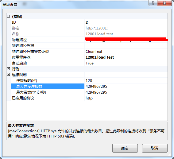 最大并发连接数:在IIS中选中一个网站,右键网站名称,在右键菜单中找到并点击【管理网站】->【高级设置】。打开对话框如下图:
