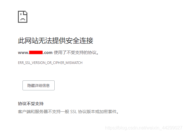 好了,问题找到了,就是服务器不支持TSL 1.2,首先要确定服务器是否支持TLS 1.2,参考图如下: