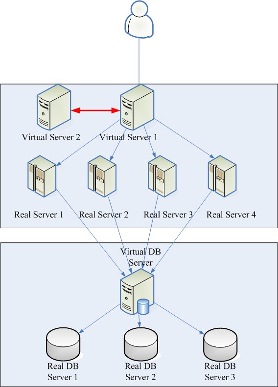 上图 2 中,有四台 Real Server (Web Server),以及三台 Real DB Server,形成 Web 及 DB 的服务器集群 (Cluster)。我们看到最上方的 Virtual Server 1 本身不具备任何的数据服务 (如:.NET 代码、图片...等),只有一个功能,就是将用户的连线 request 请求,重新导向下方的四台 Real Server。这种利用重新导向 (director) 的方式,将服务负载分布给 Real Server 的方式,就称作 Load Balance。